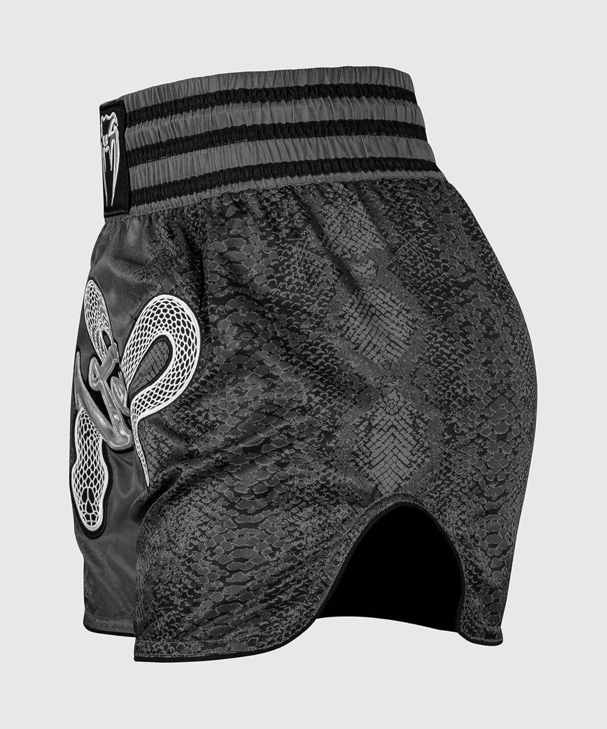 Blaze the way to victory, the Venum Inferno is a fierce new range of authentic Muay Thai shorts, made in Thailand and available in eight colorways. Made with a light and flexible fabric, these shorts are designed for your comfort as you strike. Side slits offer greater freedom of movement in the ring. A reflective patch with “Venum” sits across the front of the short and front belt. Meanwhile, flames reach up the sides of these shorts. This distinctive short is a must-have for Muay Thai practitioners.
