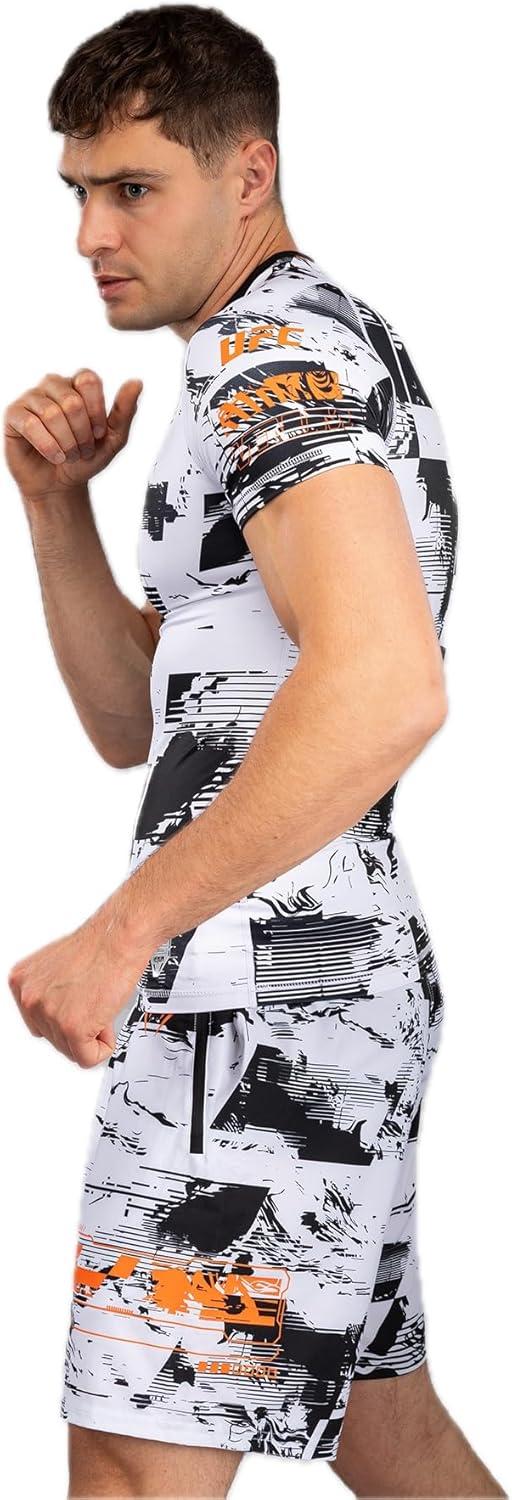 Venum Mens UFC Zenith Men’s Authentic Fight Week Performance Rashguard(Black/White/Orange)