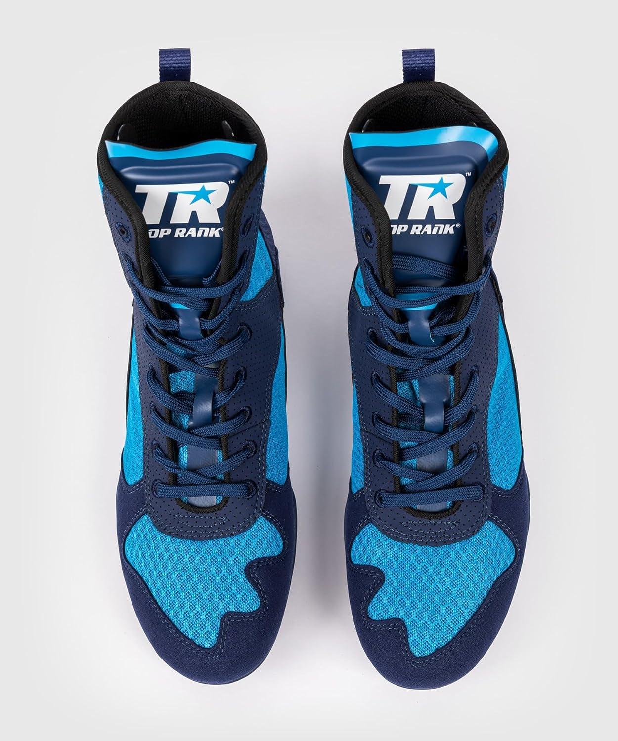 Introducing Venum x Top Rank Original, a collaborative collection. This full line of Venum apparel and gear has been developed to put athletes in the best possible position to perform, just as Top Rank has done for more than 50 years in boxing promotion.The Venum x Top Rank Original Boxing Shoes in Navy Blue are based on the bestselling Venum Elite Boxing Shoe model, which offers the perfect balance between stability on the canvas and lightweight mobility. An excellent choice for regular training and competition, the superior construction of this shoe was developed and refined through feedback from professional fighters.Lateral reinforcements and exceptional grip on the outsole provide superior support and control. A flatter insole provides further stability throughout the shoe, connecting you to the ring. A true attacker’s shoe, the Venum x Top Rank Original Boxing Shoes allow you to maneuver out of precarious positions thanks to the support offered by the lightweight mid-cut upper.Meanwhile, the shoes’ “honeycomb” mesh allows the foot to breathe during even the most intense workouts, providing a comfortable and long-lasting footwear option for fighters.