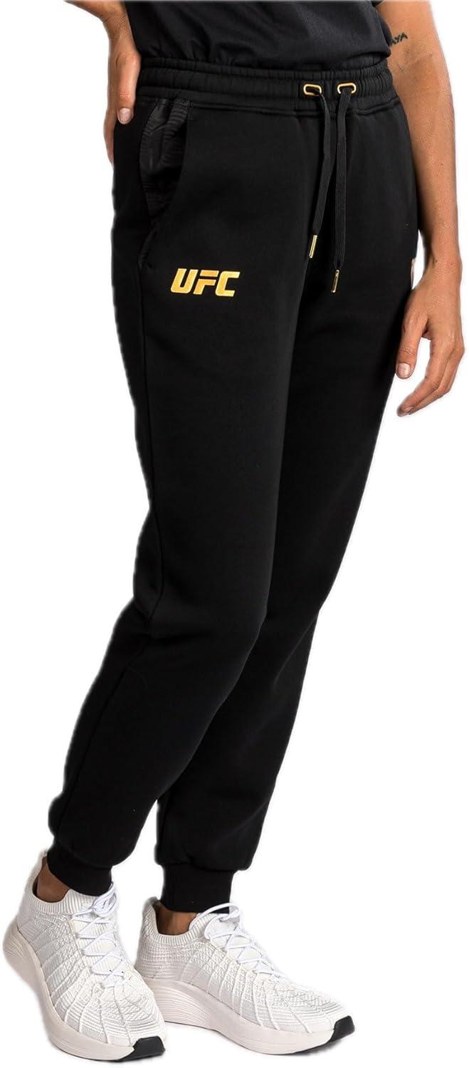 UFC Zenith by Venum represents the apex of performance innovation. This advanced gear is designed with next-generation materials and optimized functionality, enabling athletes to exceed physical boundaries, elevate their potential, and achieve maximum performance both in and out of the Octagon. Inspired by the outfits worn by UFC athletes, UFC Zenith by Venum Replica collection is ideal for fans and fighters alike. The Women’s UFC Zenith by Venum Replica Pant features open side pockets and a drawstring waistband for tailored comfort. These lifestyle-inspired pants offer optimal freedom of movement for when you’re on the move. White Venum and UFC logo detailing at the hips add finish to these casual sweatpants. This black/gold colorway is reserved for UFC champions.
