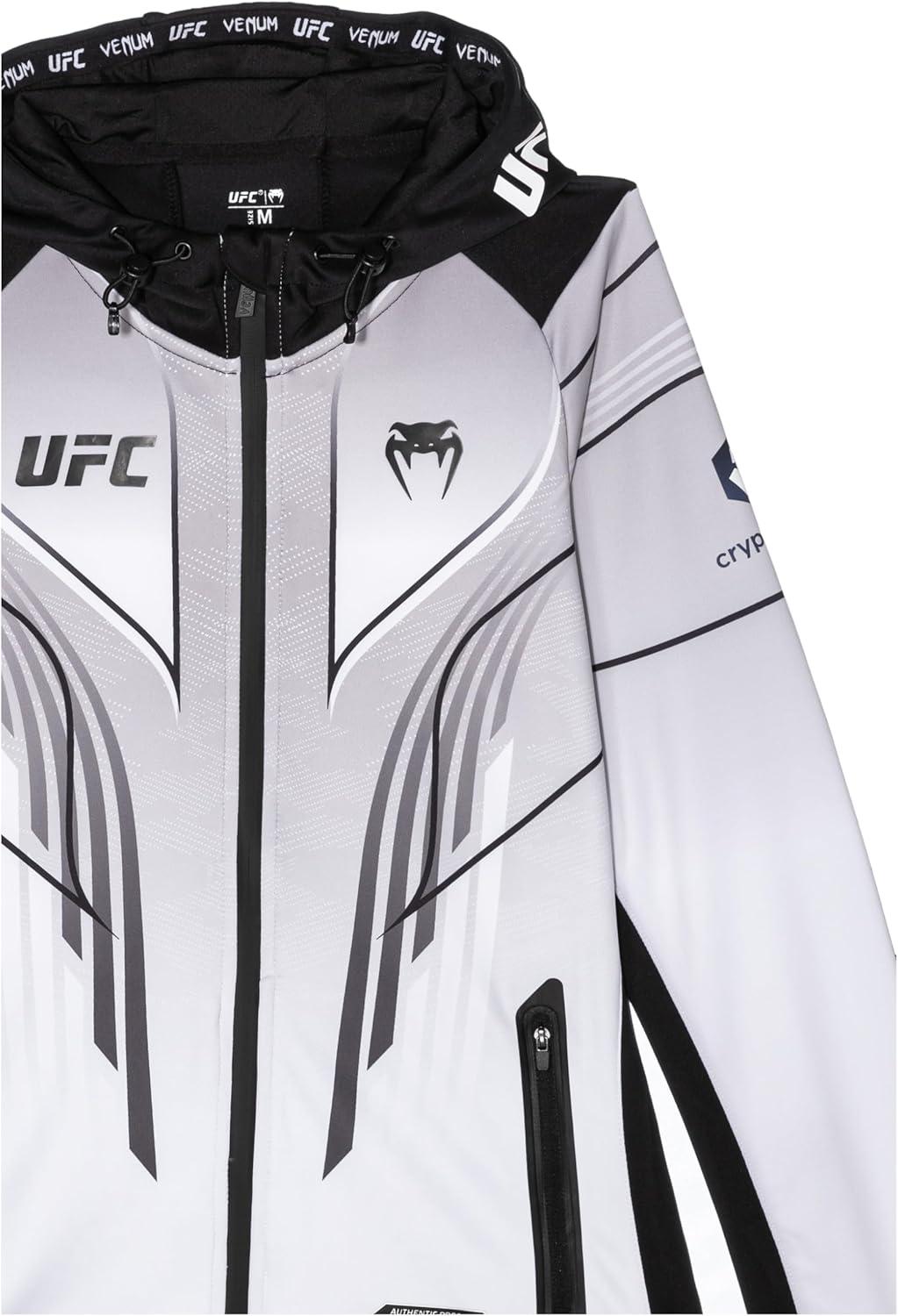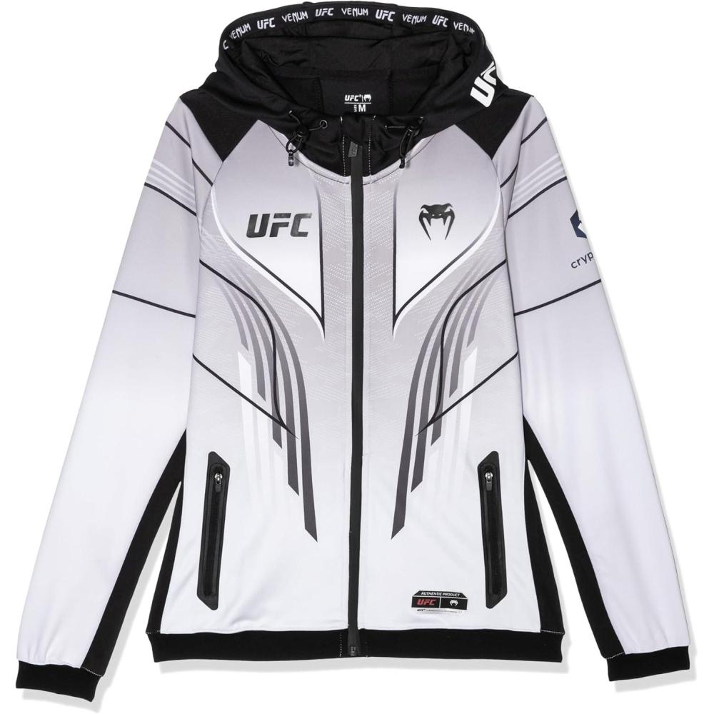 Show your fighter’s mindset to the world wearing the UFC Authentic Fight Night 2.0 long sleeve zipped jacket. This jacket is worn by the greatest UFC fighters during their pre-fight warm-up as well as their entrance to the Octagon to control their body warmth. The UFC Fight Night 2.0 jacket is perfect for sports and compliments your everyday wardrobe. A combination of technology, this jacket has been designed to provide optimal comfort to fighters throughout their preparation during the fight night. It will keep you warm before and after your training but also in everyday life. The black color of the fight night collection has been worn by some of the greatest fighters for their walkout like Robert Whittaker, Derick Lewis and Mackenzie Dern Stylist's Tip: Stay comfortable and combine the authentic fight night 2.0 jacket with a blue jean or a fitted black jogger