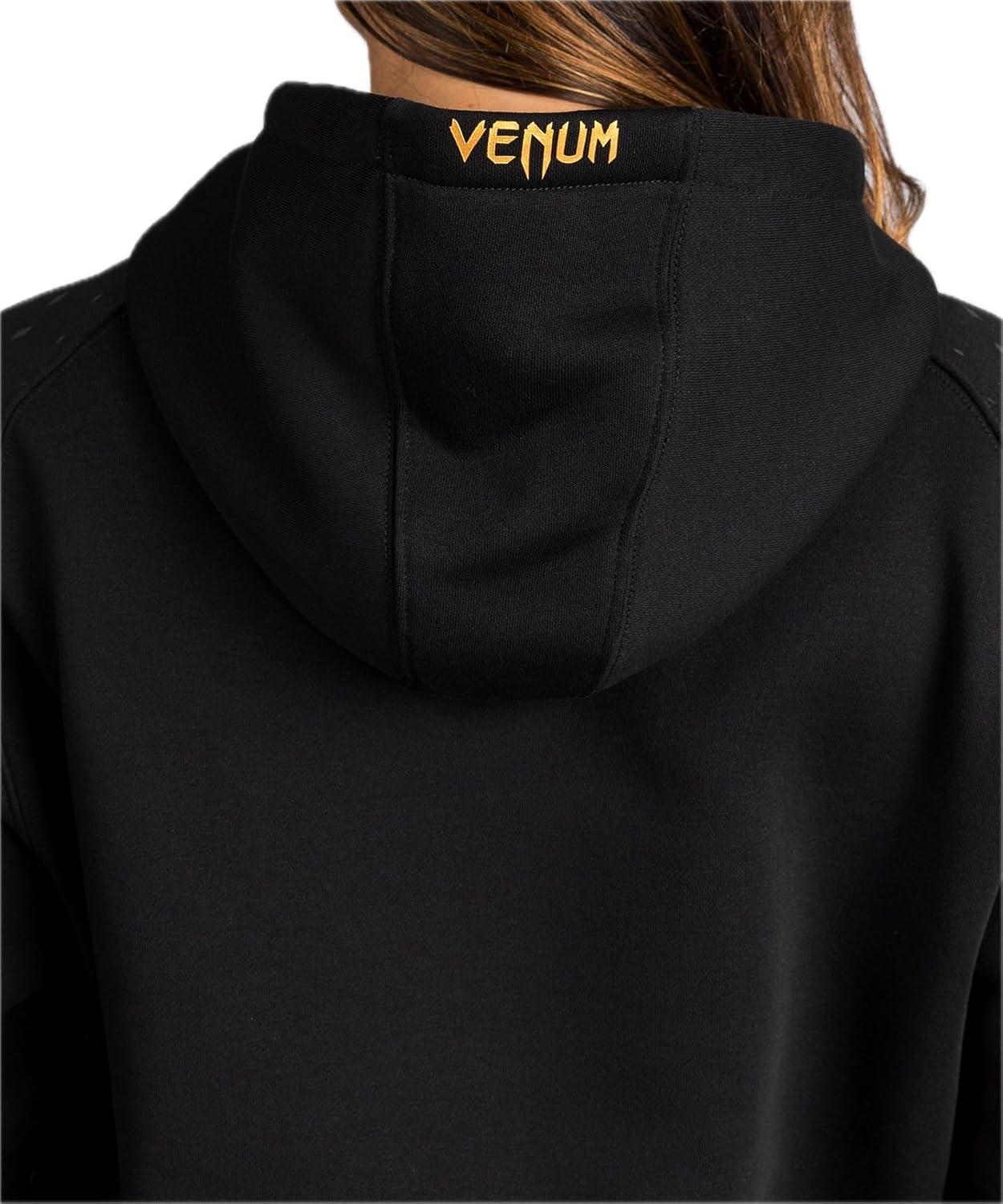 UFC Zenith by Venum represents the apex of performance innovation. This advanced gear is designed with next-generation materials and optimized functionality, enabling athletes to exceed physical boundaries, elevate their potential, and achieve maximum performance both in and out of the Octagon. Inspired by the outfits worn by UFC athletes, UFC Zenith by Venum Replica collection is ideal for fans and fighters alike. The Women’s UFC Zenith by Venum Replica Pullover Hoodie features a kangaroo style front pocket and drawstring hood. Venum and UFC logo detailing sit at the chest and hood. Available in two colors, it matches perfectly with the other products from the same collection. This black/gold colorway is reserved for UFC champions.